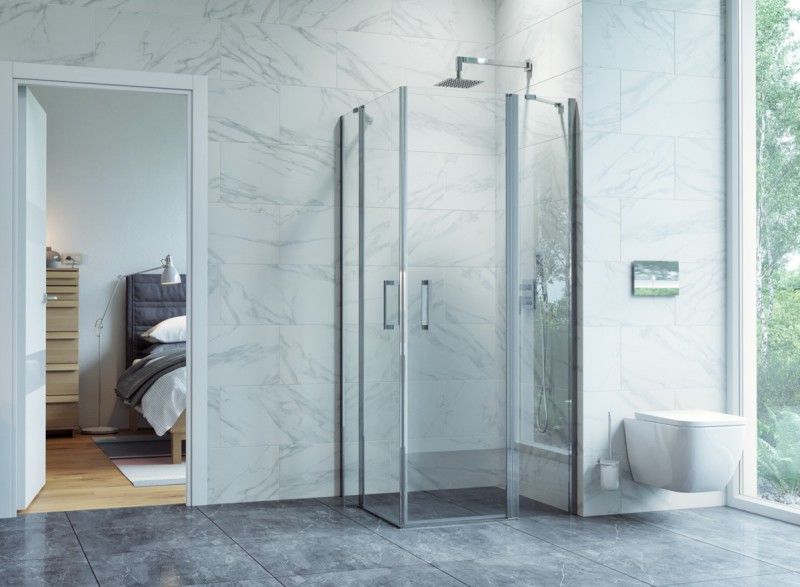 Seria kabin MAZO z drzwiami uchylanymi do wewnątrz i na zewnątrz. Drzwi ze ścianką stałą.