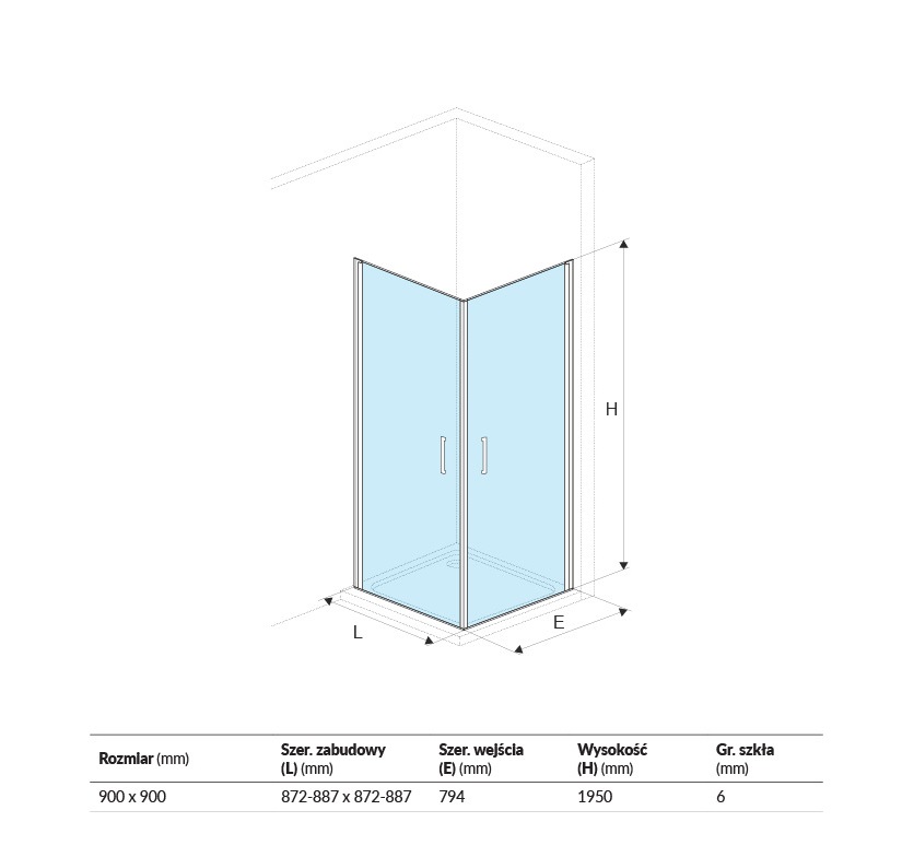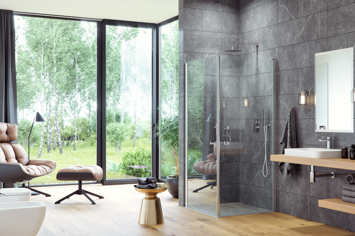 Seria kabin MAZO z drzwiami uchylanymi do wewnątrz i na zewnątrz.