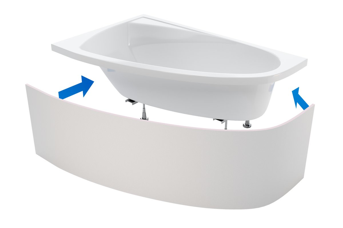 Obudowa dopasowana do wanien narożnych, do zabudowy długiego frontu (maksymalny wymiar boku długiego to 2500 mm). W komplecie znajduje się zestaw łączników.