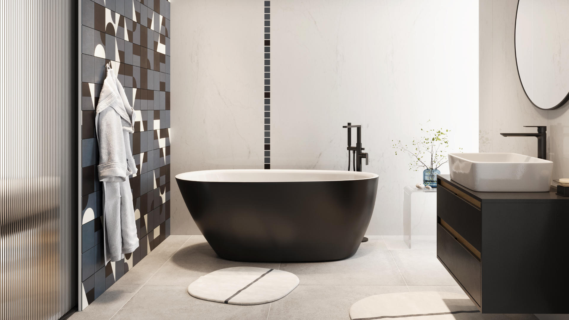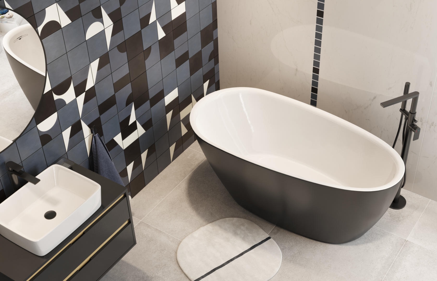 Model dostępny jest w kilku wariantach wykończenia: biały połysk, biały mat oraz wersje z akcentem w kolorze czarny mat, szary mat, a także matowe cappuccino — najnowsza propozycja w kolekcji. Dzięki temu możesz łatwo dopasować wannę do charakteru swojej łazienki.