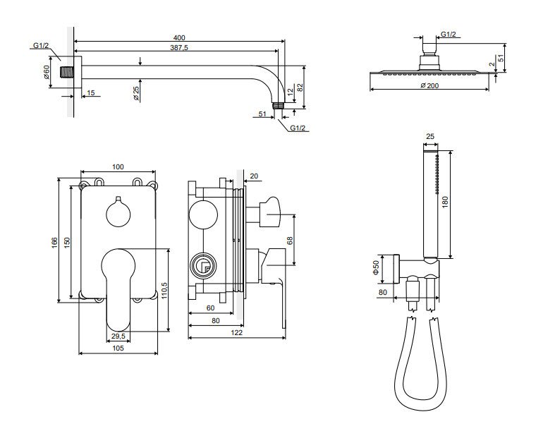 Zestaw podtynkowy Oxalia składa się z