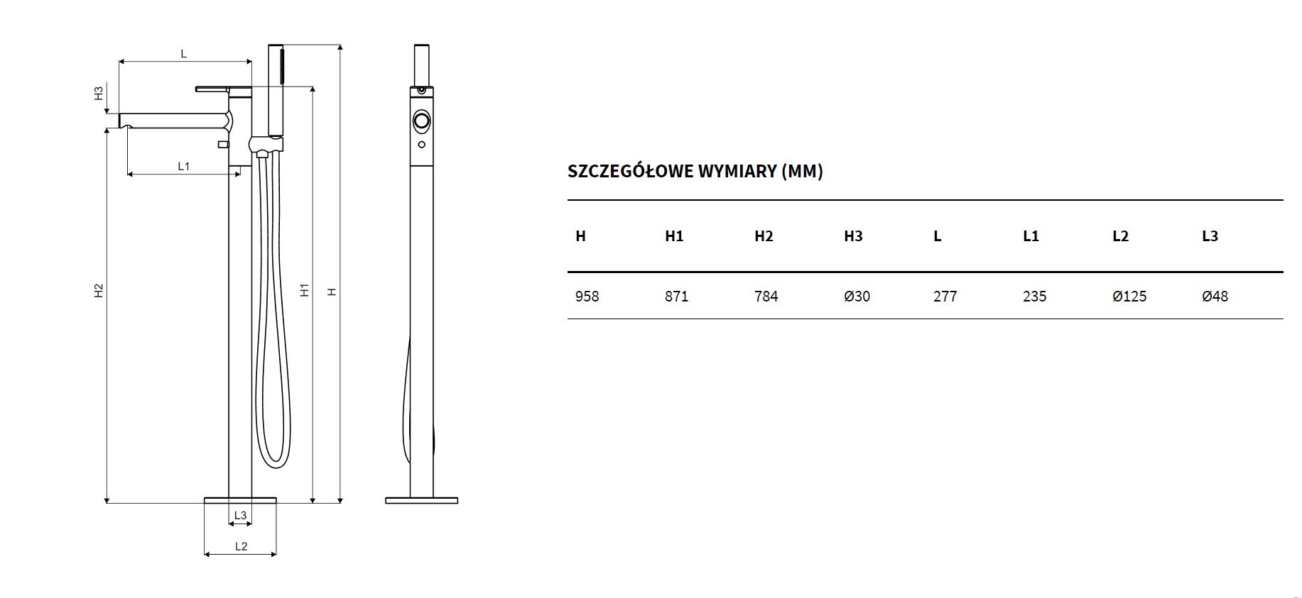 Bateria wannowa wolnostojąca: