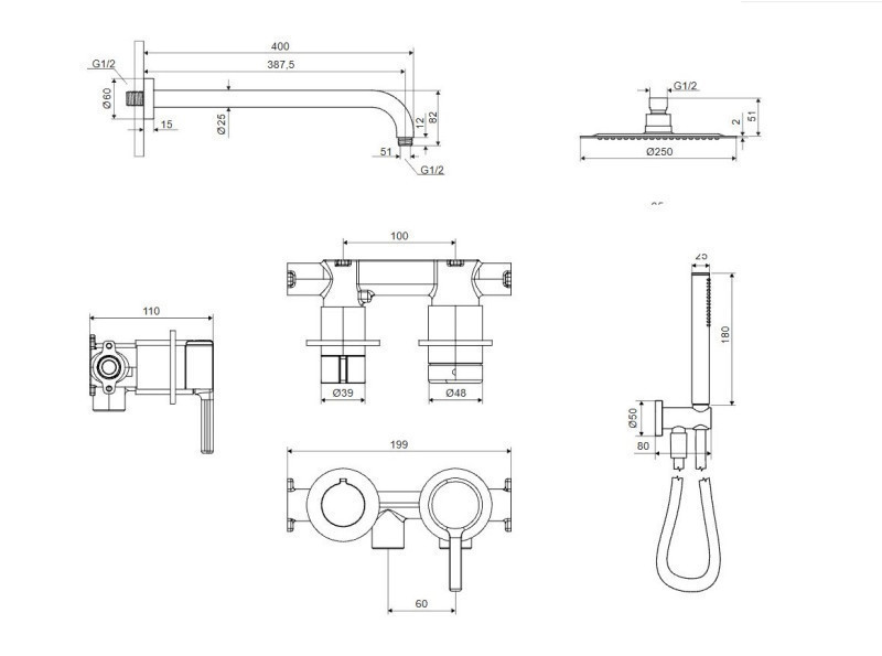 Pi Zestaw prysznicowy podtynkowy 2 funkcyjny