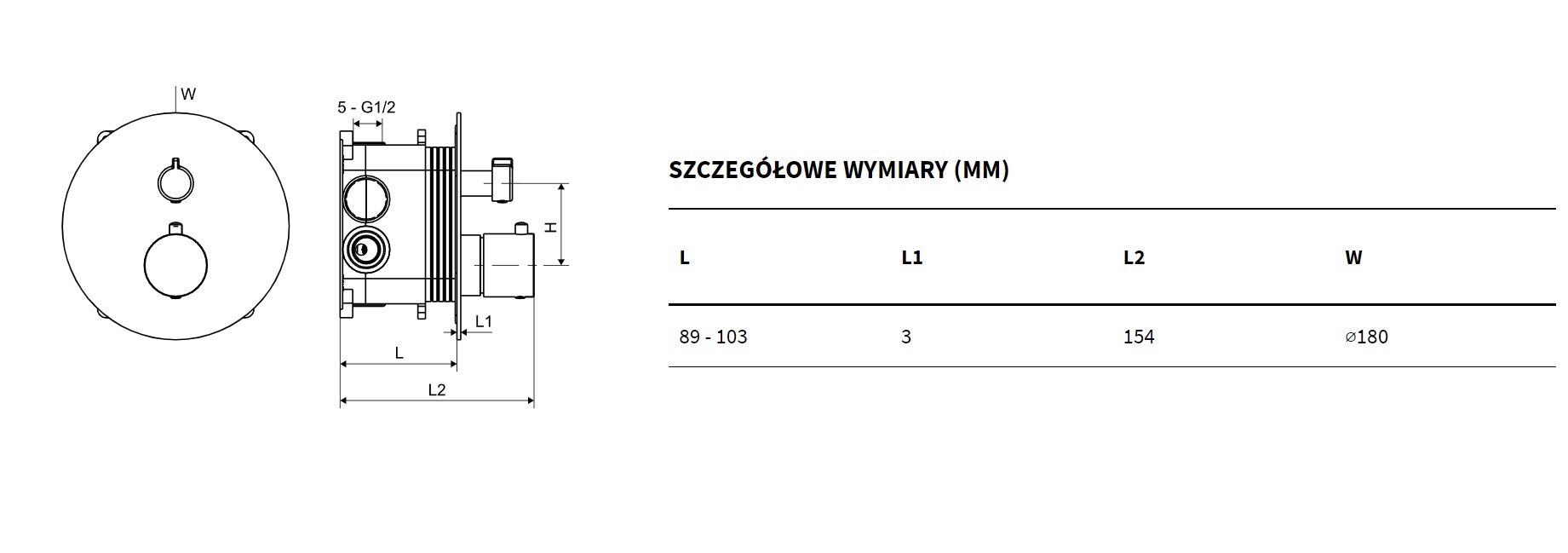 Termostatyczna bateria podtynkowa 3-funkcyjna: