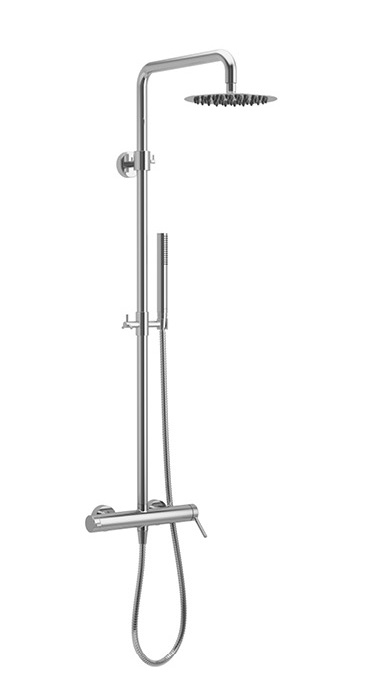 Zestaw prysznicowy PI daje duże możliwości dopasowania – ponad 60 cm regulacji wysokości drążka. Posiada mechaniczny przełącznik funkcji w postaci pokrętła z lewej strony baterii, uchwyt baterii pozwala na swobodną regulację ciśnienia i temperatury. Bateria posiada wbudowaną głowicę Kerox. Bateria połączona jest z pionową rurą zestawu o długości 91-153 cm oraz wysięgiem 38 cm. Górna głowica o średnicy 20 cm, oraz 1-funkcyjna słuchawka pozwalają na komfortowe użytkowanie zgodnie z potrzebami.