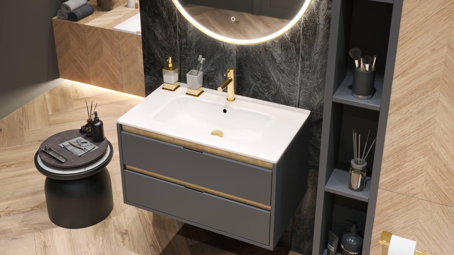 Miejsce odkładcze ułatwia organizację przestrzeni strefy umywalki.