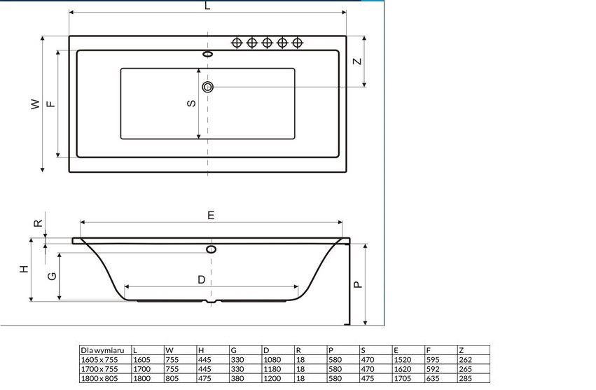 Wannę Pryzmat Slim wyróżnia w ofercie Excellent niski rant (18 mm). Uzyskanie tak niskiego rantu możliwe było dzięki dodatkowemu wzmocnieniu pod rantem wanny.