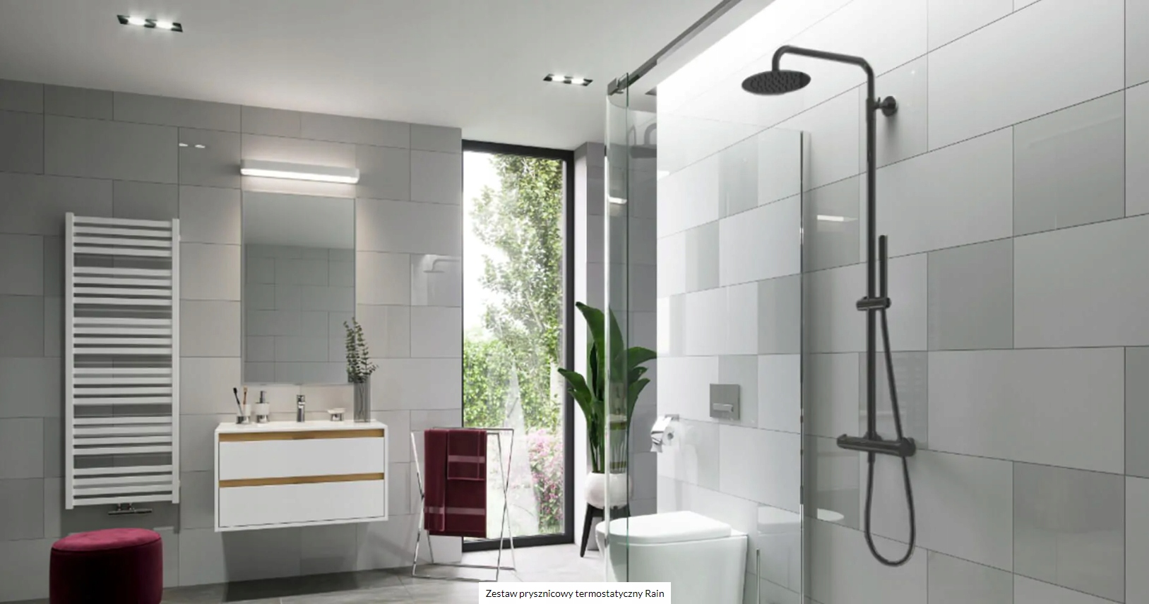 Zestaw prysznicowy Rain Termo Round to idealne rozwiązanie do strefy prysznica, gdy w łazience istnieją standardowe wyprowadzenia wody pod baterię prysznicową- z głowicą górną i słuchawką. Zestaw wykonany z mosiądzu, posiada głowicę termostatyczną, dzięki niej zestaw jest bezpieczniejszy do użytkowania przez dzieci lub osoby wymagające szczególnej troski. Zmiany wylotu wody głowica/słuchawka dokonujemy pry pomocy mechanicznego przełącznika. Regulowany wysięg drążka pozwala na swobodne dostosowanie do osób o różnym wzroście.