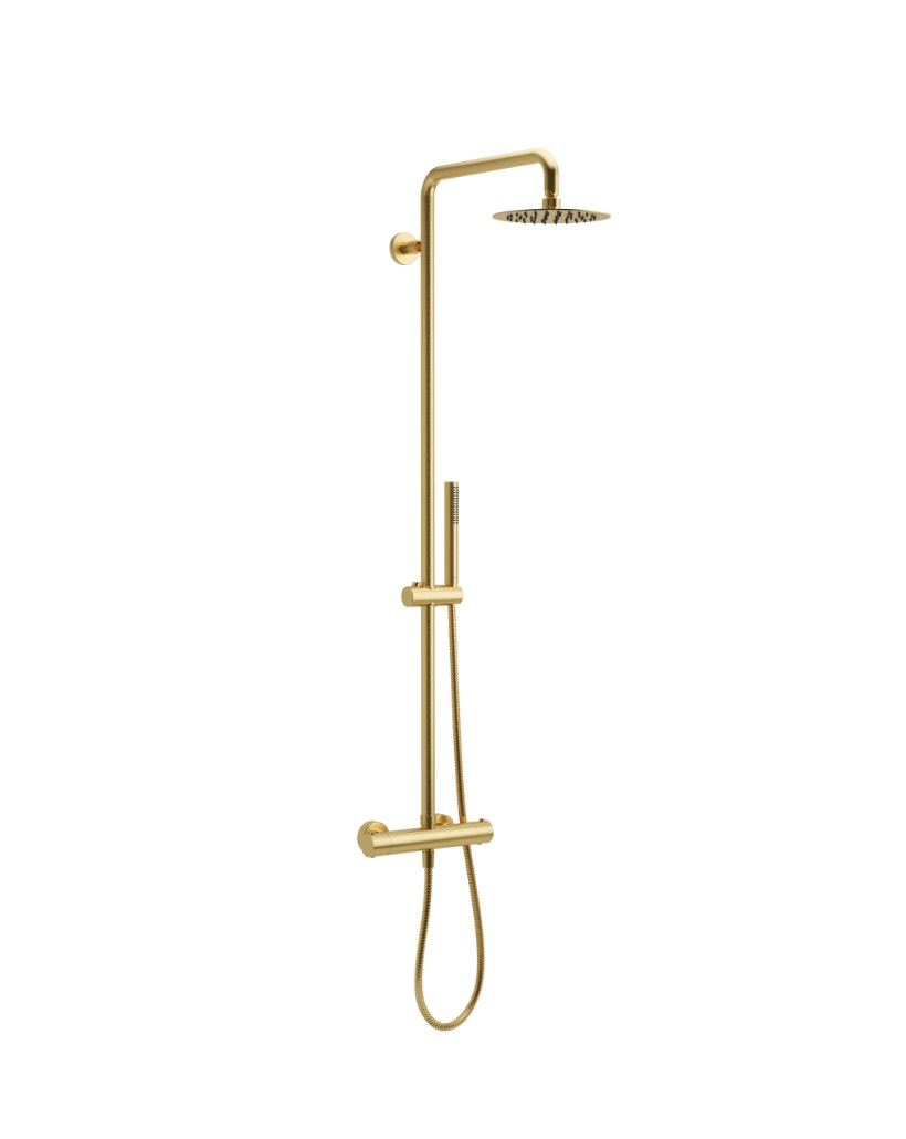 Zestaw prysznicowy Rain Termo Round, wykonany z wysokiej jakości mosiądzu, wyróżnia się nie tylko trwałością i niezawodnością, ale również eleganckim, nowoczesnym designem. Kolor złoty szczotkowany nadaje łazience wyrafinowanego charakteru, doskonale wpisując się w zarówno klasyczne, jak i minimalistyczne aranżacje.