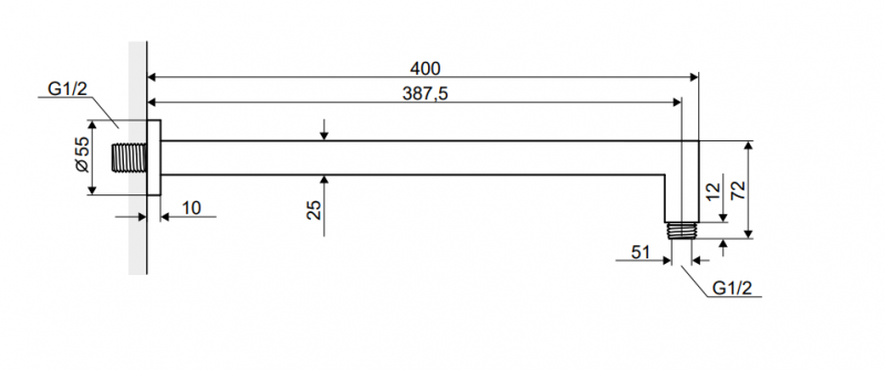 Ramię prysznicowe ścienne kwadratowe o długości 400mm wykonane z mosiądzu, posiada dodatkowy element montażowy, który zwiększa jego stabilność. Idealne do komponowania z deszczowniami okrągłymi o różnych rozmiarach.