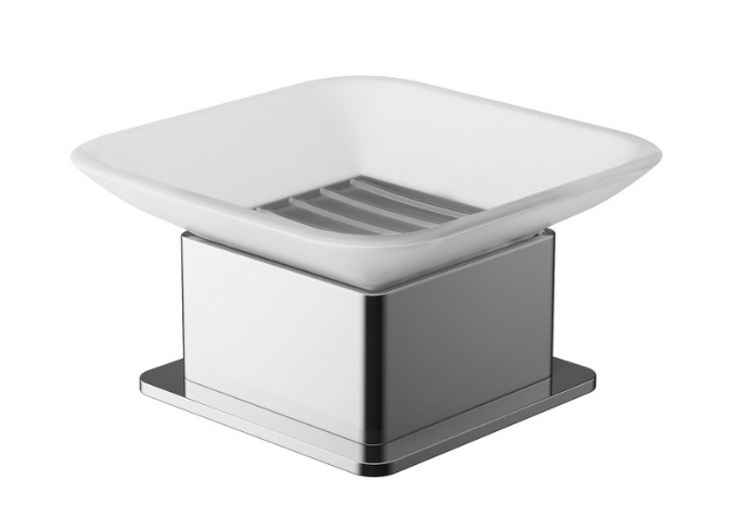 Mydelniczka szklana stojąca RIKO składa się z metalowej podstawki oraz szklanej mydelniczki. Metalowa podstawka wyposażona jest w plastikową obręcz zabezpieczającą szklany element przed uszkodzeniem. Podstawka posiada specjalne naklejki chroniąca powierzchnię przed zarysowaniem.