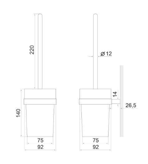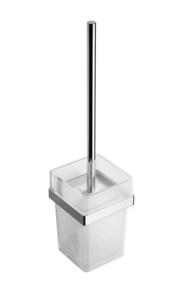 Szczotka WC szklana wisząca Riko składa się z metalowego uchwytu wykonanego z wysokiej jakości mosiądzu pokrytego chromem, pojemnika wykonanego ze szkła mrożonego oraz eleganckiej szczotki WC. Szczotka WC wisząca posiada ukryty element montażowy pozwalający na eleganckie zamontowanie produktu na ścianie.