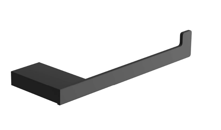 Uchwyt na papier Riko składa się z metalowego uchwytu wykonanego z wysokiej jakości mosiądzu, z powłoką w kolorze czarny mat, połączonego z elementem pozwalającym na zawieszenie papieru toaletowego. Uchwyt posiada ukryty element montażowy pozwalający na eleganckie zamontowanie produktu na ścianie.