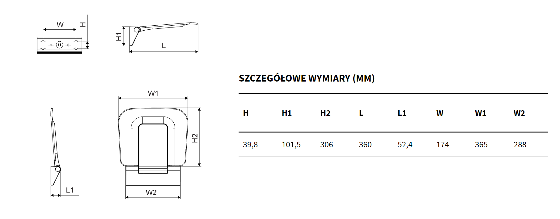 Zalecana wysokość montażu siedziska: ok. 40-45cm od posadzki lub poziomu brodzika prysznicowego. Dla wzmocnienia konstrukcji przy montażu siedziska polecamy stelaże podtynkowe Trago.