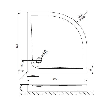 Brodzik półokrągły bialy ze zintegrowaną obudową