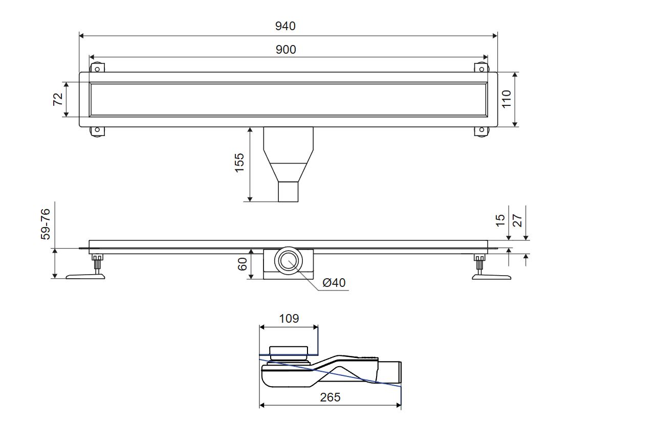 Odpływ liniowy Stilio łączy w sobie minimalizm i praktyczność użytkową. Wykonany został z wysokiej jakości stali nierdzewnej, pokrytej specjalnie opracowanym i niezwykle trwałym lakierem proszkowym czarny mat. dpływ posiada wygodną regulację nóżek w pionie i w poziomie w zakresie do 30mm. Szeroki wybór dostępnych rozmiarów odpływów i wersji rusztu daje możliwość dostosowania do wielkości kabiny oraz wymiarów płytek, co znacznie ułatwia planowanie układu już na etapie projektowania.