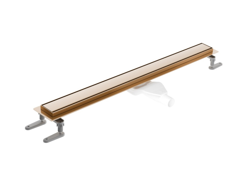Odpływ liniowy Stilio łączy w sobie minimalizm i praktyczność użytkową. Wykonany został z wysokiej jakości stali nierdzewnej, pokrytej powłoką PVD w kolorze miedzi. Odpływ posiada wygodną regulację nóżek w pionie i w poziomie w zakresie do 30mm. Szeroki wybór dostępnych rozmiarów odpływów i wersji rusztu daje możliwość dostosowania do wielkości kabiny oraz wymiarów płytek, co znacznie ułatwia planowanie układu już na etapie projektowania.