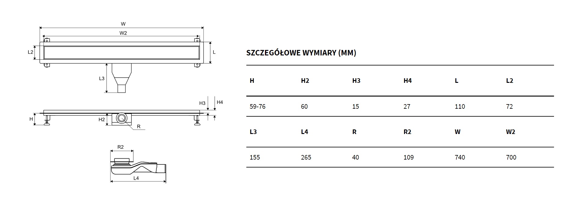 Rusz wykonany ze stali nierdzewnej polerowanej jest przeznaczony do zabudowy płytkami. Odpływ dostosowany jest do płytek o standardowej grubości 8-12 mm. Wysoką jakość użytych materiałów potwierdza wysoka klasa odporności na obciążenie K3 (obciążenie do 300 kg).
