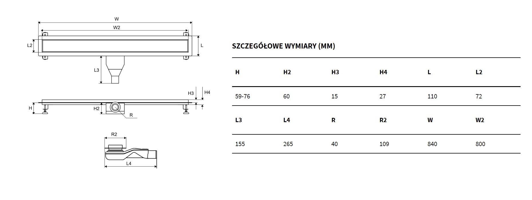 Rusz wykonany ze stali nierdzewnej polerowanej jest przeznaczony do zabudowy płytkami. Odpływ dostosowany jest do płytek o standardowej grubości 8-12 mm. Wysoką jakość użytych materiałów potwierdza wysoka klasa odporności na obciążenie K3 (obciążenie do 300 kg).
