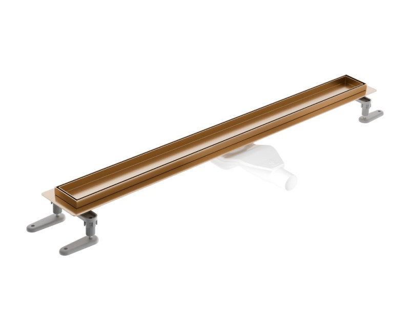 Odpływ liniowy Stilio łączy w sobie minimalizm i praktyczność użytkową. Wykonany został z wysokiej jakości stali nierdzewnej, pokrytej powłoką PVD w kolorze miedzianym. Odpływ posiada wygodną regulację nóżek w pionie i w poziomie w zakresie do 30 mm.
