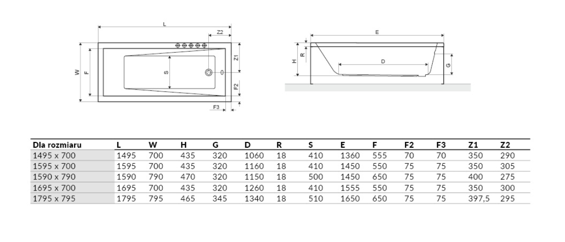 Wanny Slim z niskim rantem nie mogą zostać zabudowane obudowami typu IZI system, z uwagi na brak możliwości montażowych. Rekomendujemy stosowanie obudów FLEX system.
