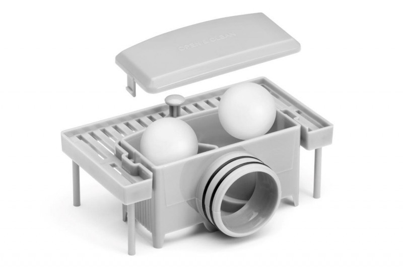 - STRAINer – skuteczne i trwałe sito, które zapobiega zapychaniu syfonu oraz ułatwia bieżącą obsługę odpływu;