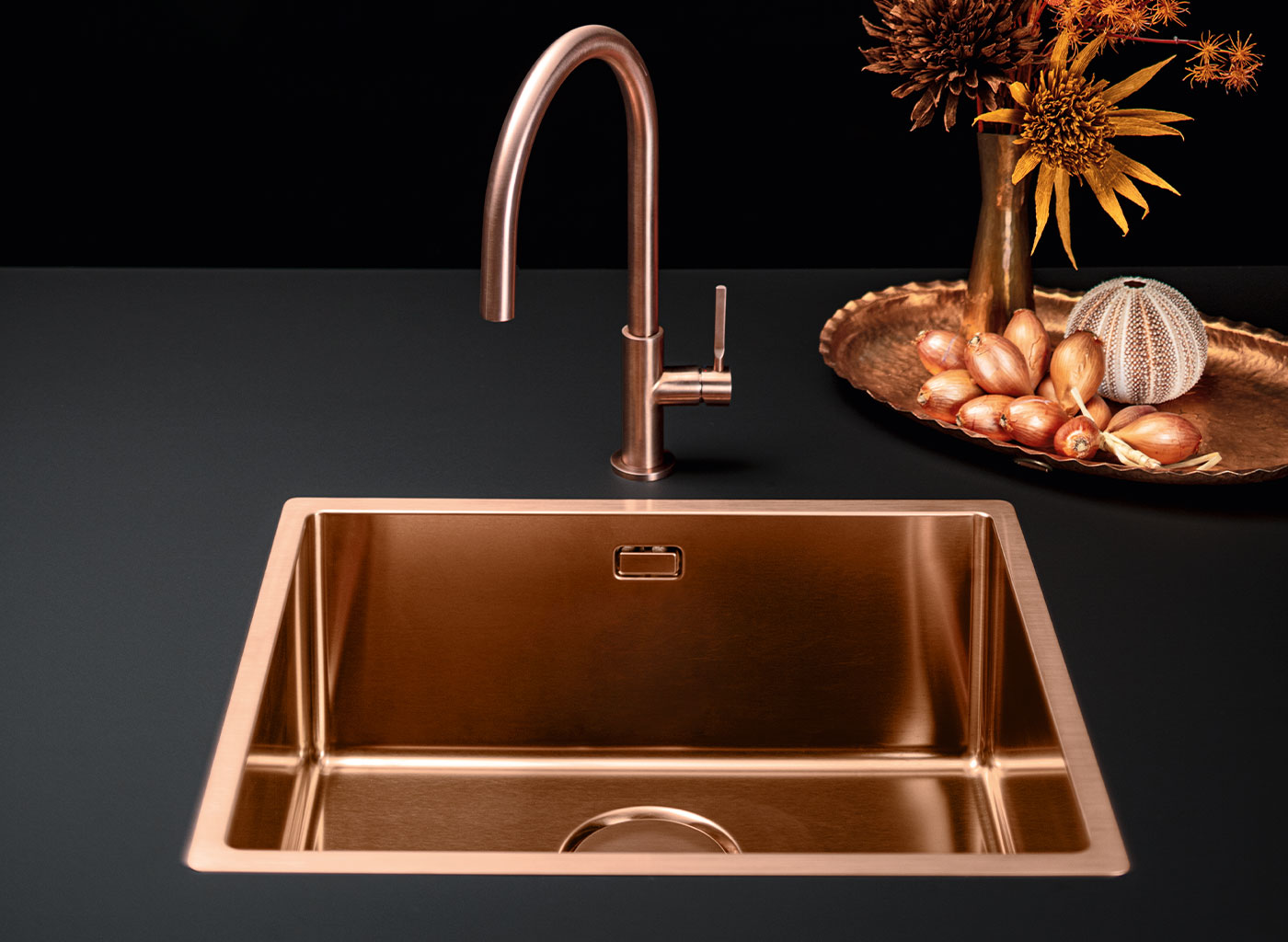 Nieodparty urok złota, ponadczasowe ciepło miedzi, efektowna elegancja matowej czerni pomagają nam stworzyć kuchnię pełną elegancji i prestiżu.