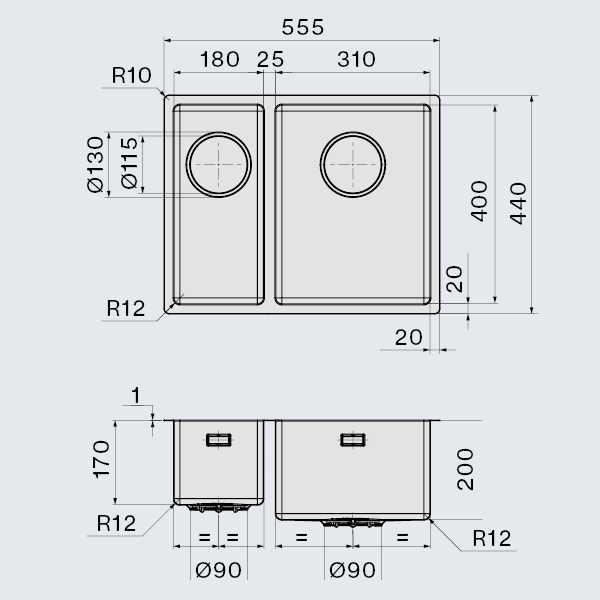 Wykonane z ręcznie spawanej o jednolitej grubości 1 mm stali AISI 304, zapewnia maksymalną precyzję każdego szczegółu i bardzo długą żywotność. Zlewozmywaki z kolekcji Garda mają wzmocnioną tylną ścianę przygotowaną do zamontowania kranu.