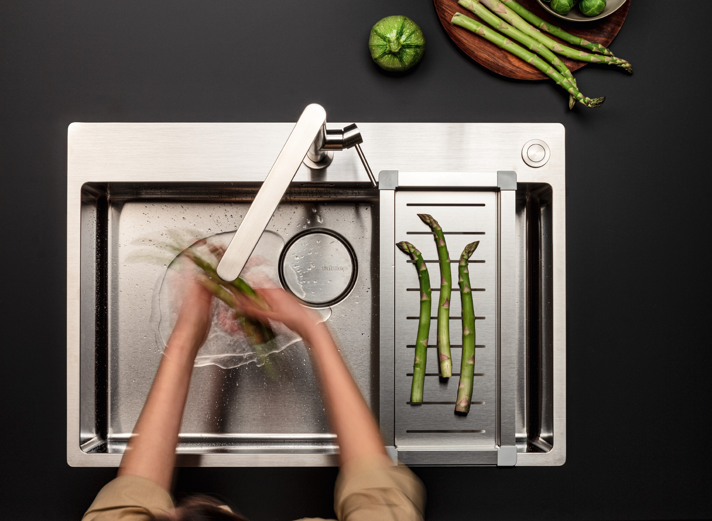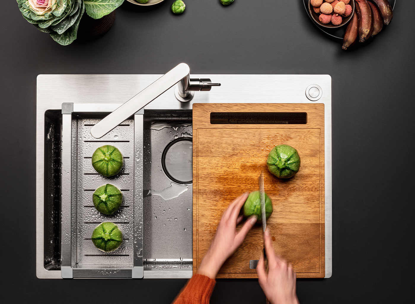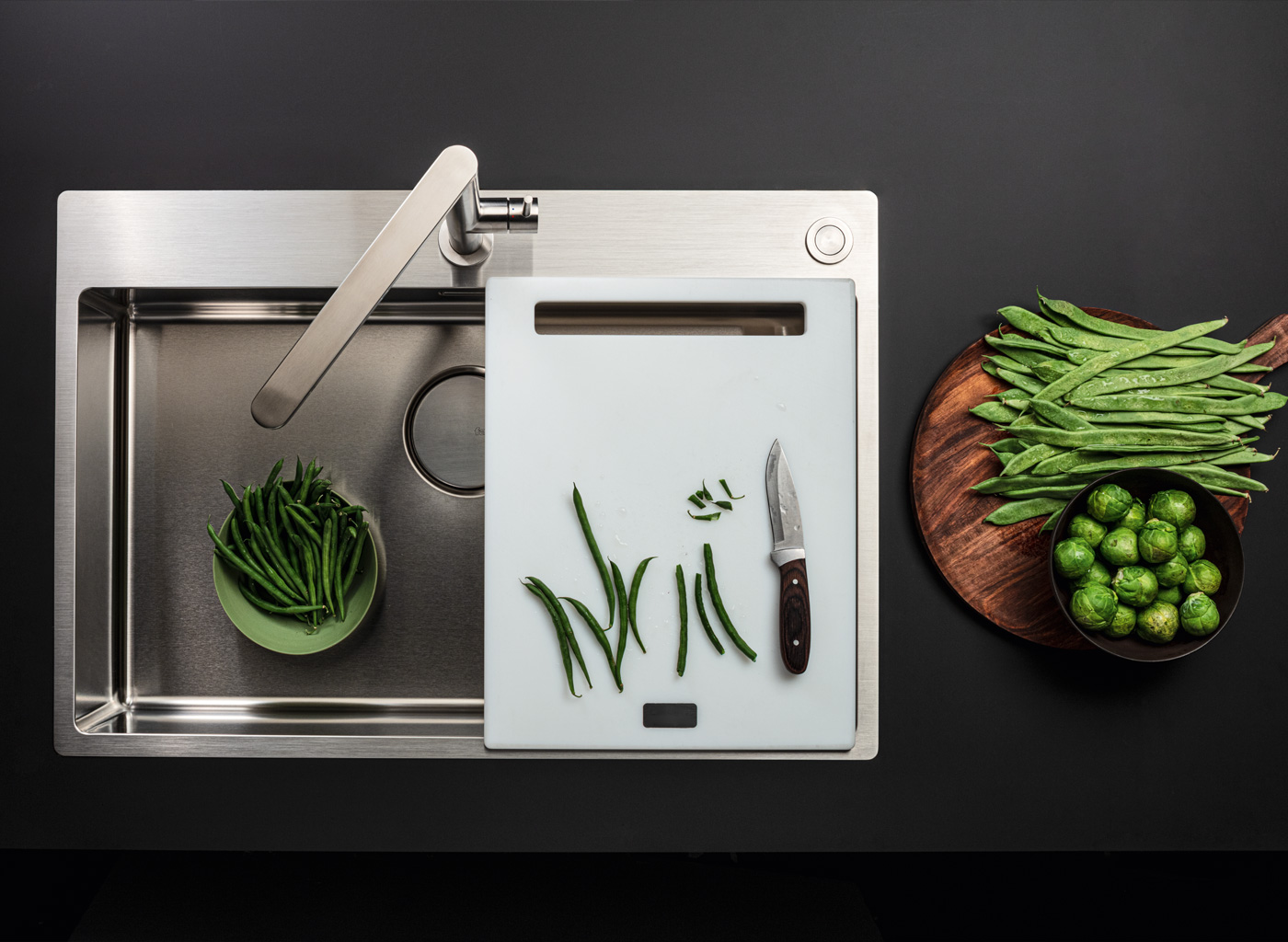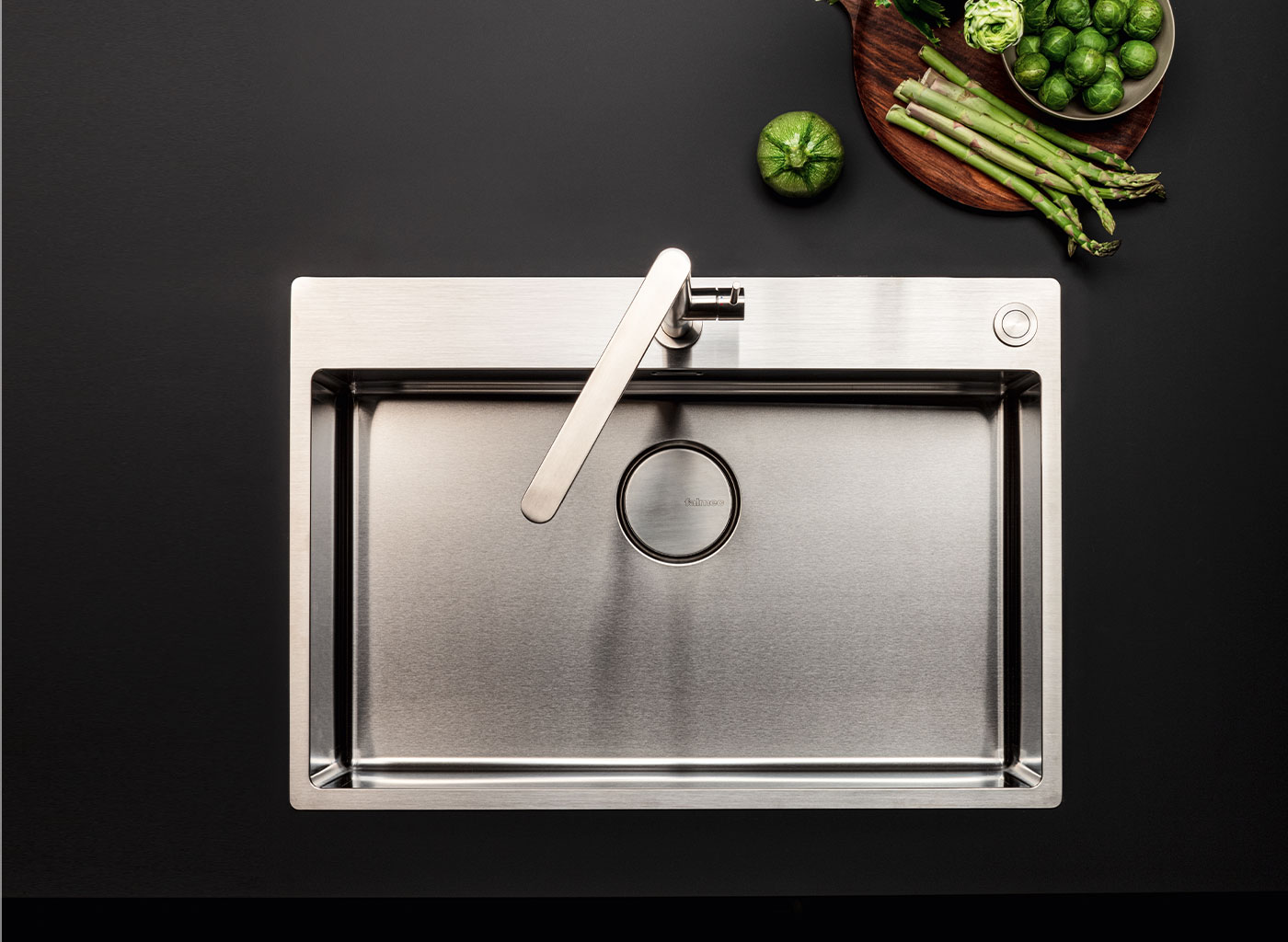 Kolekcja Garda dostępna jest w różnych wymiarach, tak aby łatwo wkomponować się w każdą przestrzeń kuchenną. Wyróżniają się innowacyjnym zintegrowanym zaworem odprowadzającym wodę, umieszczonym wygodnie pod ręką na krawędzi zlewu, jak również opatentowanym Systemem Odprowadzania Wody Falmec z korkiem umieszczonym w odpływie wpuszczonym w dno zlewu.