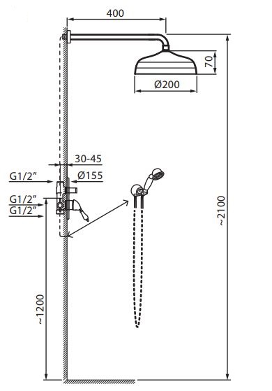 Kompletny system prysznicowy z deszczownicą marki Fromac seria Etros.