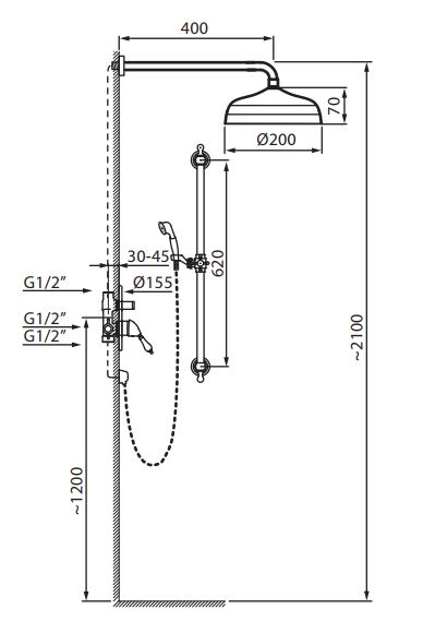 Kompletny system prysznicowy z deszczownicą marki Fromac seria Etros.