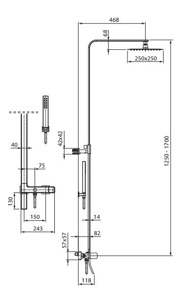 Kolumna wannowo-prysznicowa z deszczownicą i wylewką kaskadową SLIM marki Fromac.