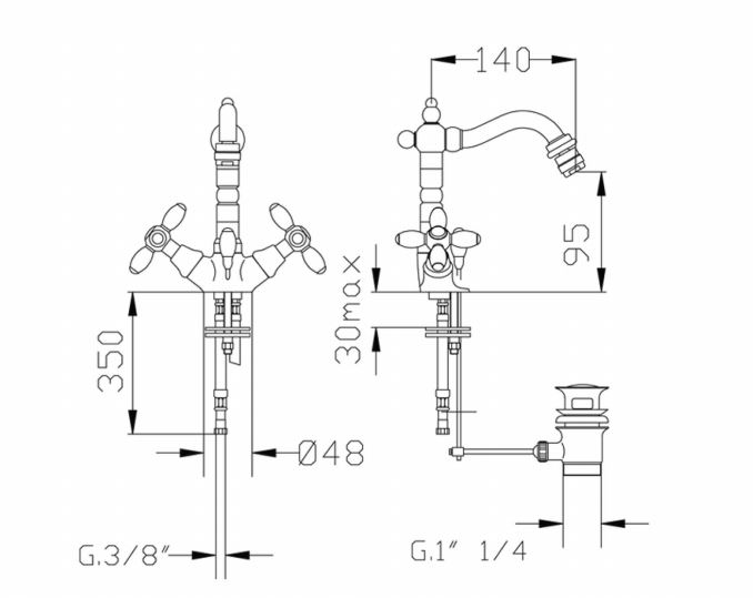 Bateria bidetowa wysoka marki Fromac seria Victorian.