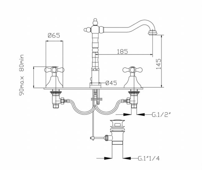 Bateria umywalkowa 3-otworowa marki Fromac seria Victorian.