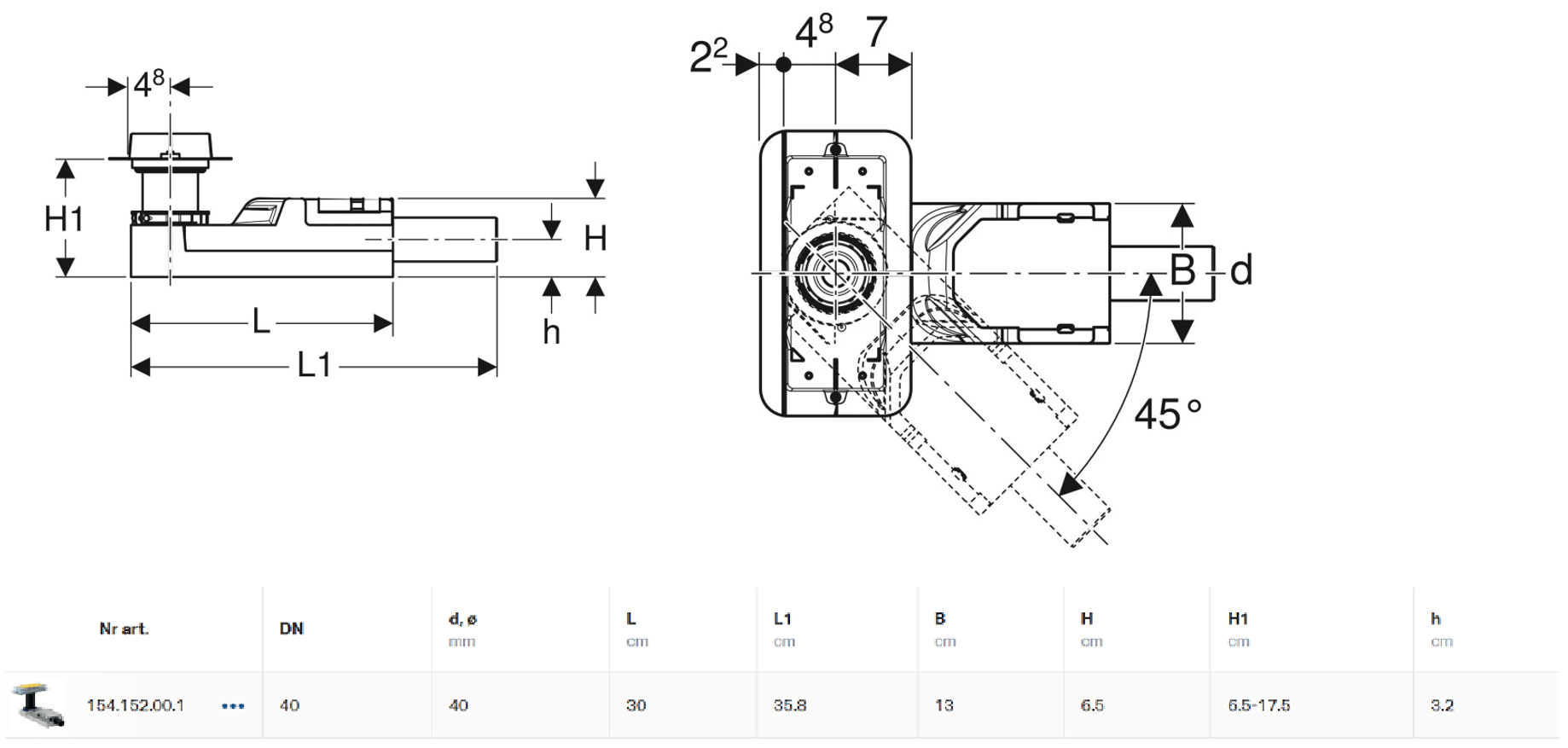 • Wysokość zasyfonowania: 30 mm