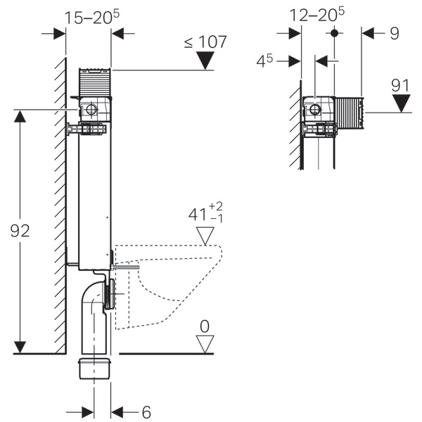 • Do wiszących misek WC o wymiarach przyłączeniowych