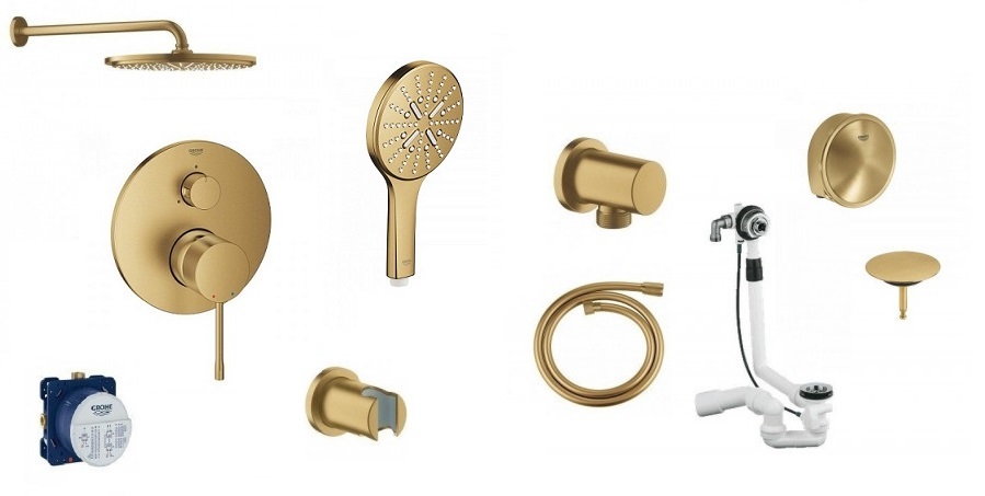Grohe kompletny system podtynkowy z deszczownicą w wykończenie złoto szczotkowane - brushed cool sunrise