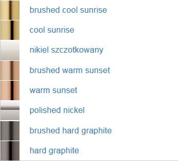 W ofercie znajdziemy obok klasycznego chromu także złoto, złoto różowe, nikiel oraz grafit.