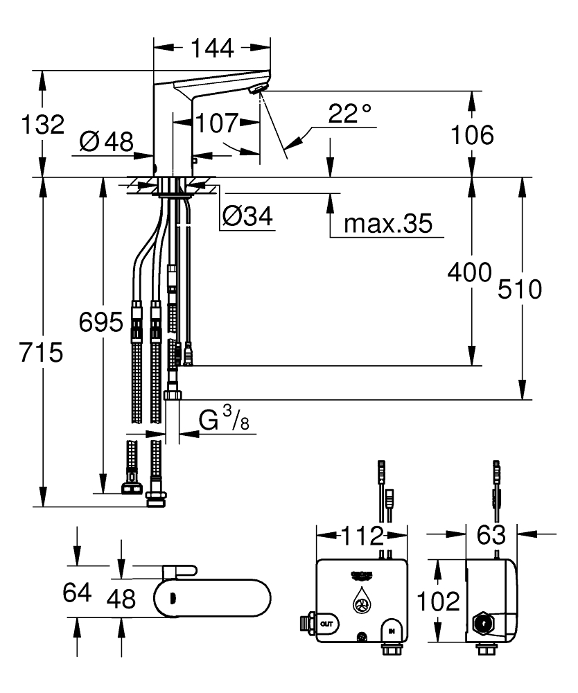 GROHE Eurosmart Cosmopolitan E bateria umywalkowa elektroniczna na podczerwień z generatorem powerbox