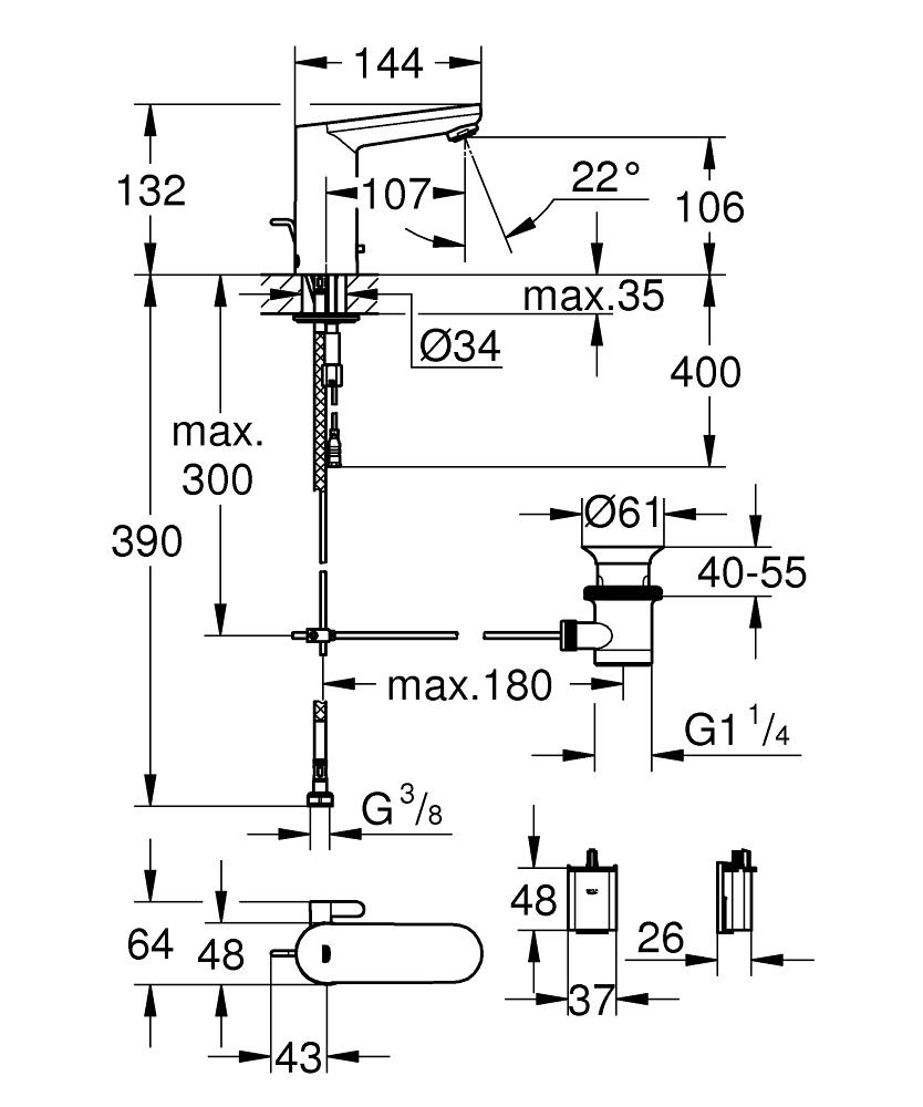 GROHE Eurosmart Cosmopolitan E bateria umywalkowa elektroniczna na podczerwień z mieszaczem i regulowanym ogranicznikiem temperatury