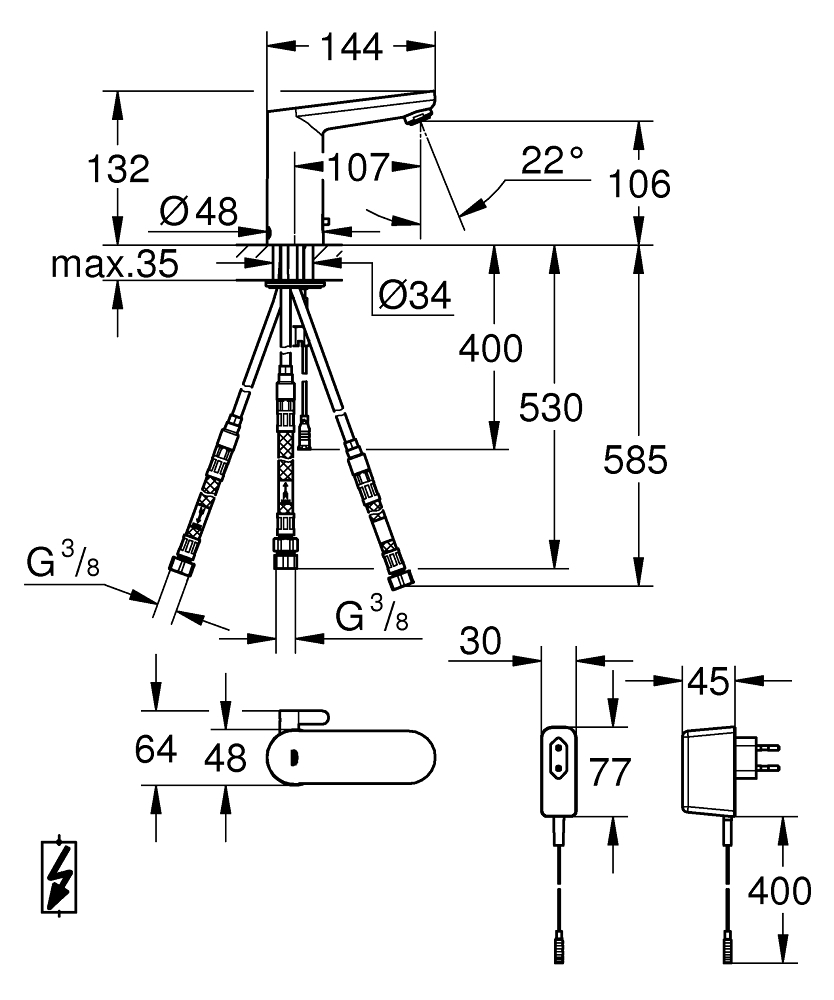 GROHE Eurosmart Cosmopolitan E bateria umywalkowa elektroniczna na podczerwień z mieszaczem i regulowanym ogranicznikiem temperatury