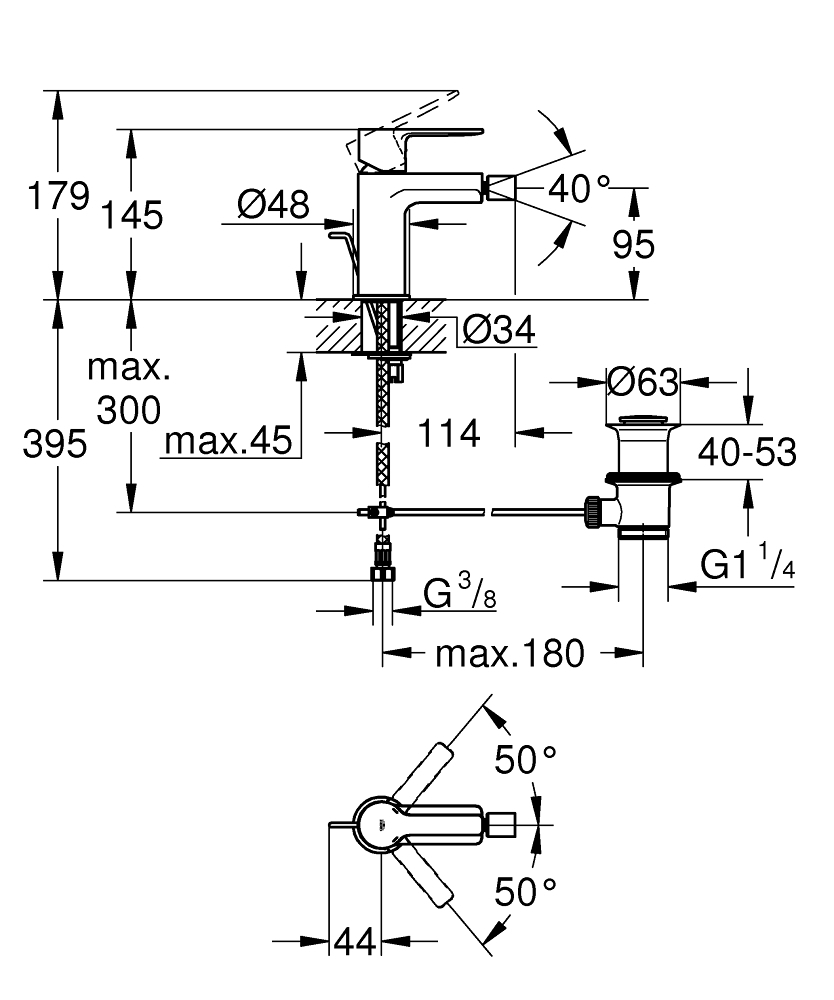 GROHE LINEARE jednouchwytowa bateria bidetowa S, DN 15