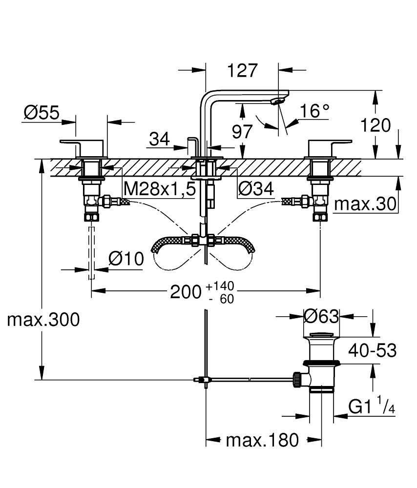 GROHE LINEARE 3-otworowa bateria umywalkowa, DN 15