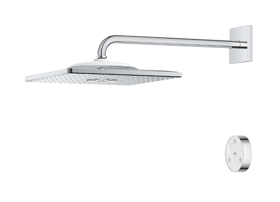 Ciesz się większą wygodą i odkryj nowy wymiar komfortu, dzięki GROHE Rainshower 310 SmartConnect. Przełączaj się pomiędzy dwoma strumieniami lub łącz je ze sobą bez sięgania do deszczownicy, dzięki rozecie umożliwiającej zdalne sterowanie, którą możesz zamontować w dowolnym miejscu pod prysznicem. Bez żadnych przyłączeń!