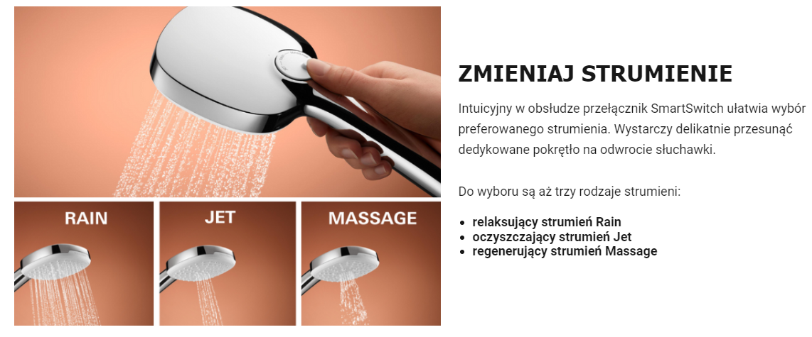 GROHE SmartSwitch intuicyjny i łatwy przełącznik ułatwia wybór preferowanego strumienia wody