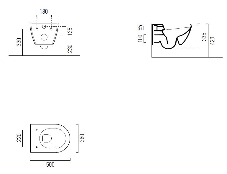 Najwazniejsza cechą charakterystyczna jest brak tradycyjnego rantu, wewnątrz którego, w normalnej toalecie, krąży woda podczas spłukiwania.