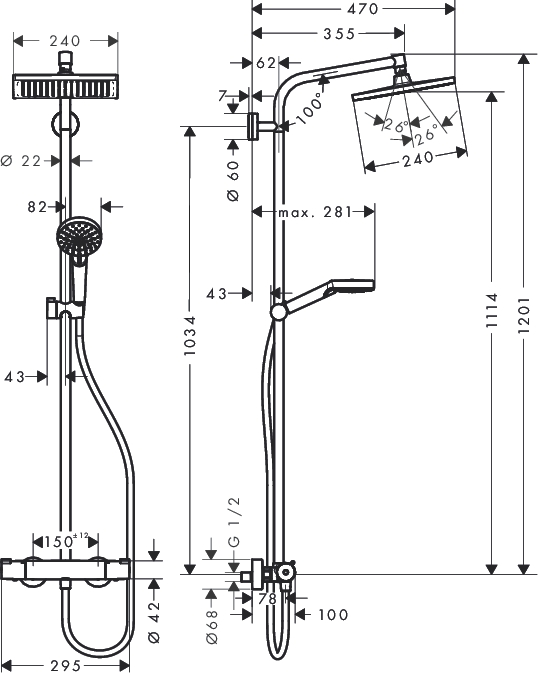 Opinie o: Hansgrohe Crometta E 240 komplet prysznicowy z termostatem i deszczownicą chrom 27271000