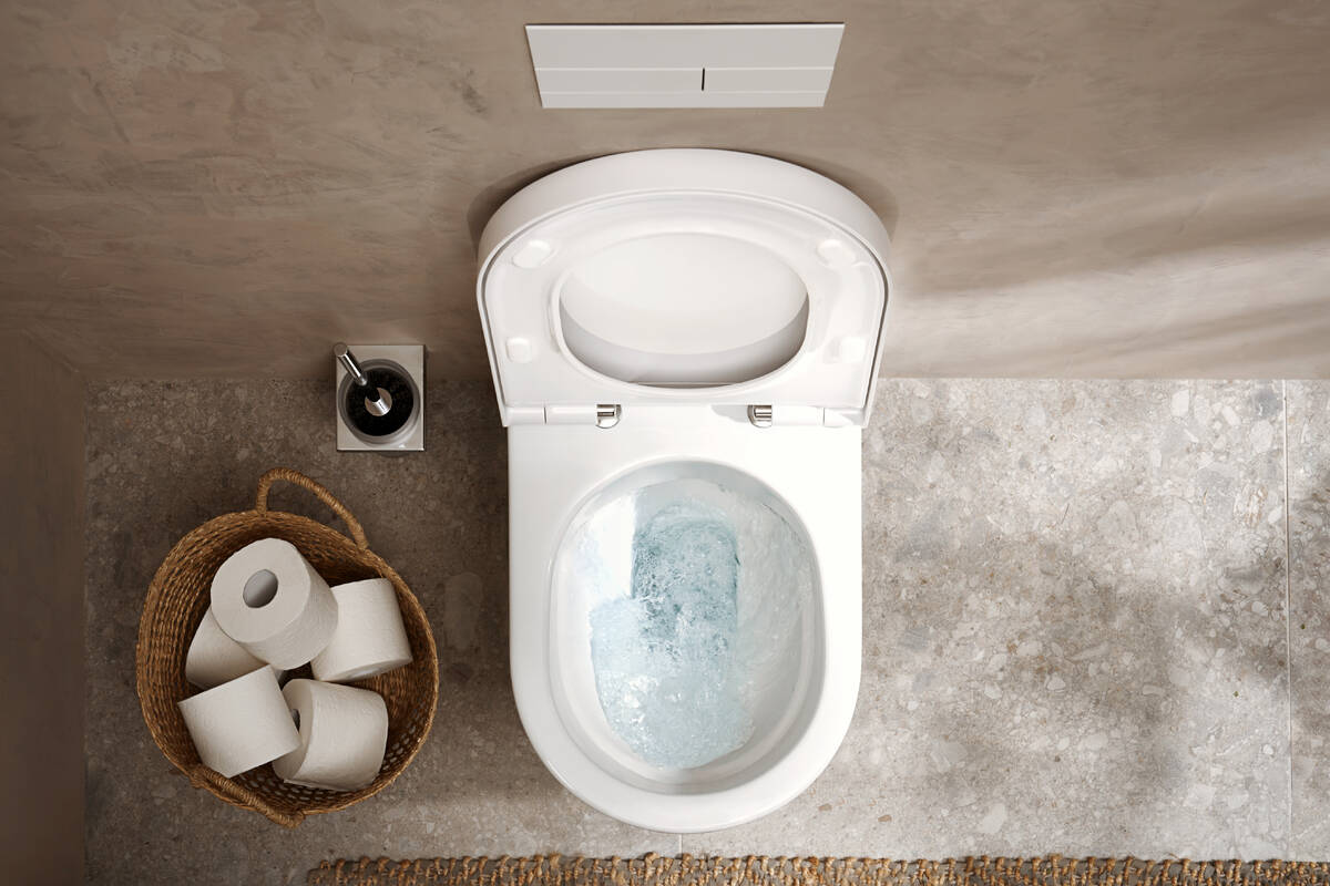System AquaFall Flush zapewnia znakomite rezultaty spłukiwania przy użyciu zaledwie 4,5 l wody na jedno spłukanie (wymagana odpowiednia spłuczka). Małe spłukanie przy użyciu mniejszego przycisku na płytce spłukującej pozwala ograniczyć tę ilość nawet do 3 l. To korzyść dla środowiska i dla Twojego portfela.