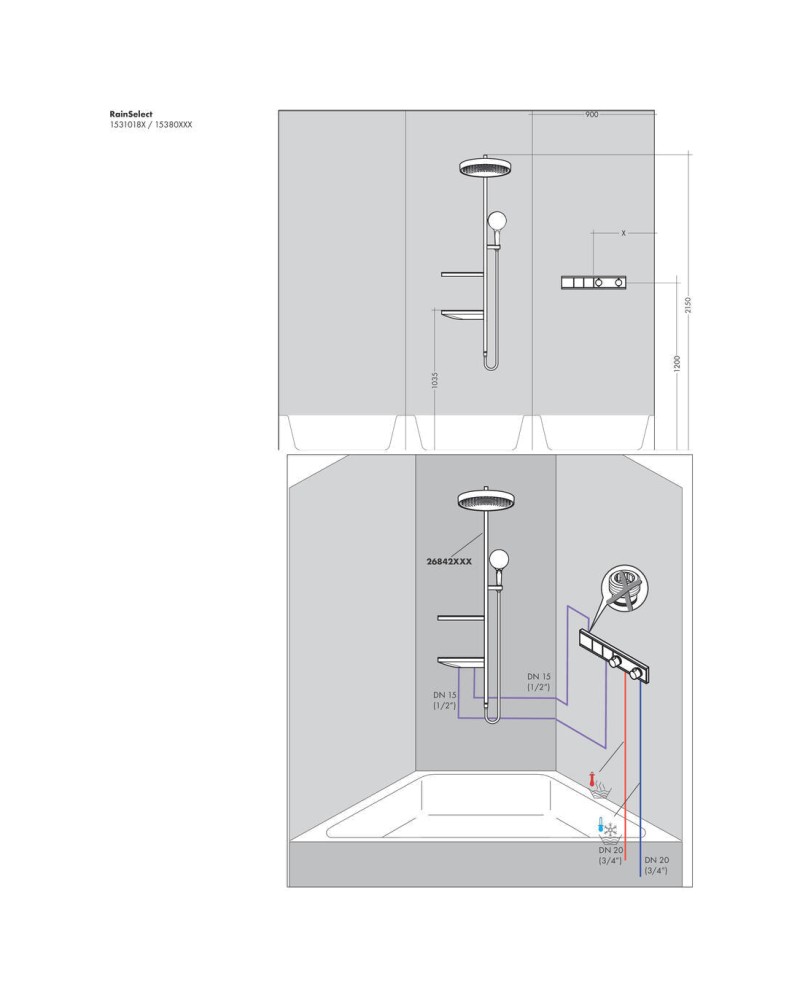 Bateria termostatyczna RainSelect do montażu podtynkowego do obsługi 2 odbiorników