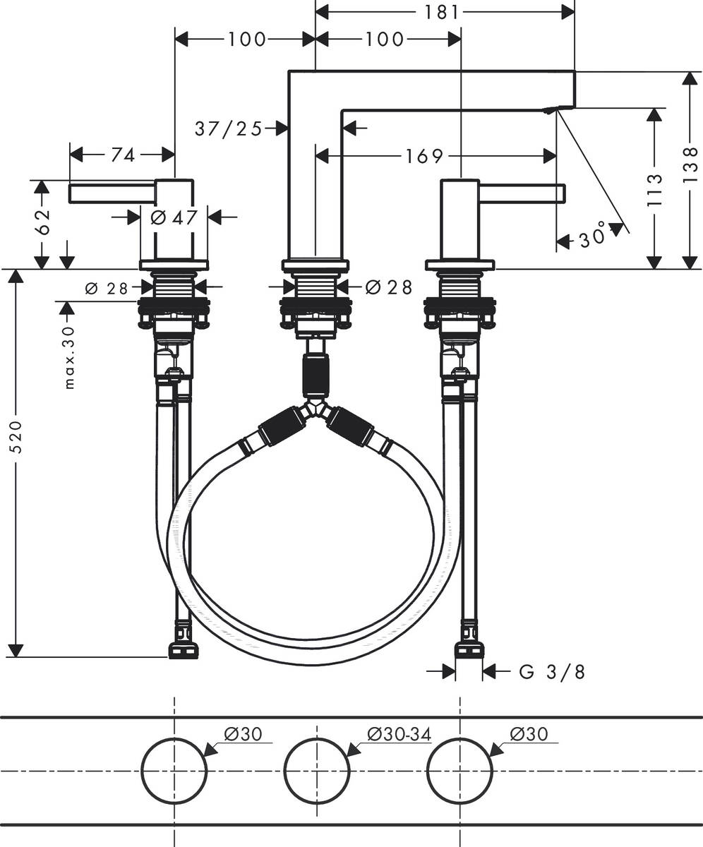 Hansgrohe Finoris 110 bateria umywalkowa 3-otworowa